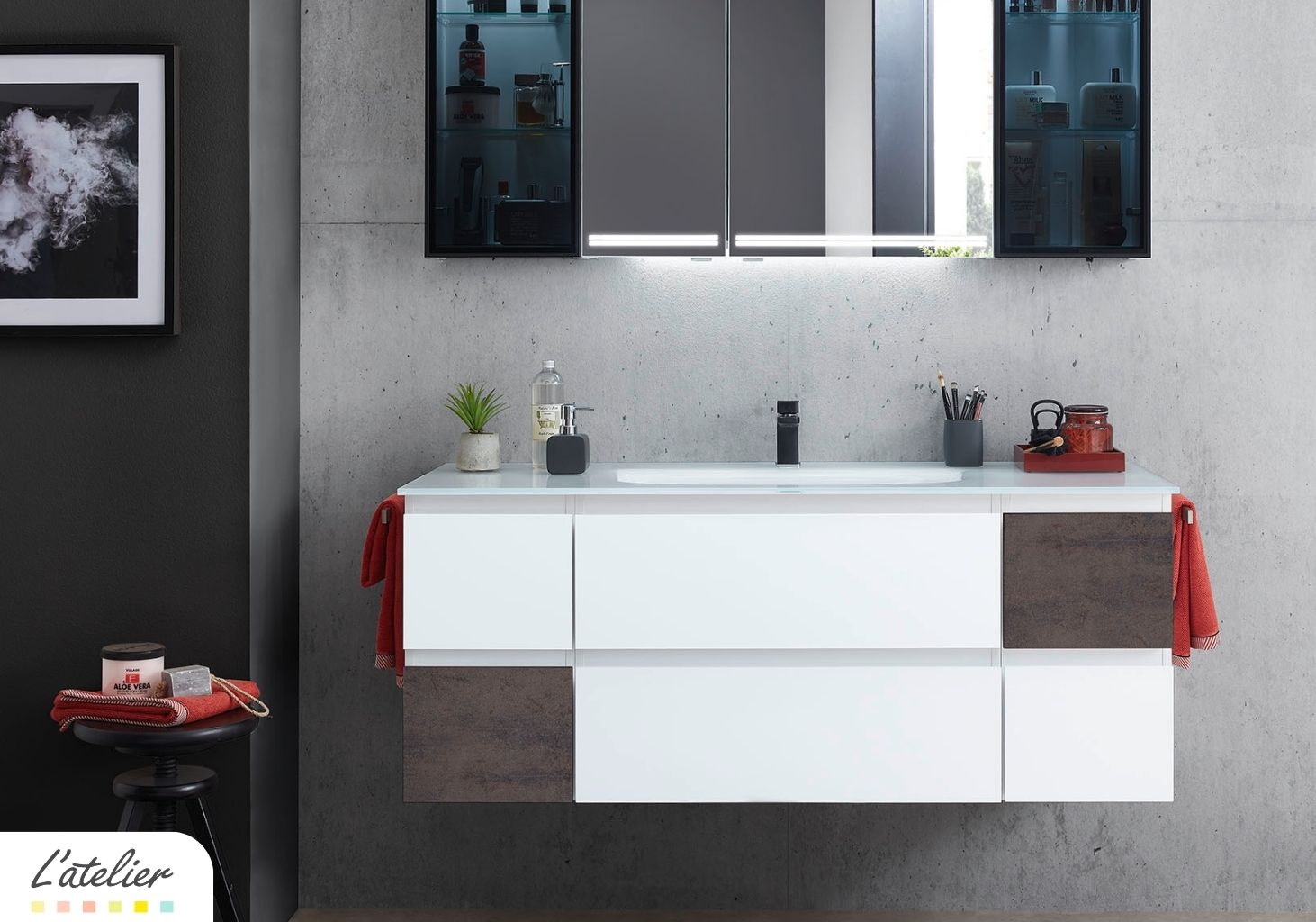 Avec le plan de toilette en verre de Novita sous toutes ses formes, la Pack III explore en transparence un design raffiné. Toutes les facettes du meuble de bain sont là ! Que ce soit en version standard ou sur mesure avec des plans au millimètre près (77,1 cm à 240 cm), on y trouvera son content. Coupez, découpez à l’envie… incurvé, arrondi, angulaire, en biais, tous les reliefs s’offrent à vous !