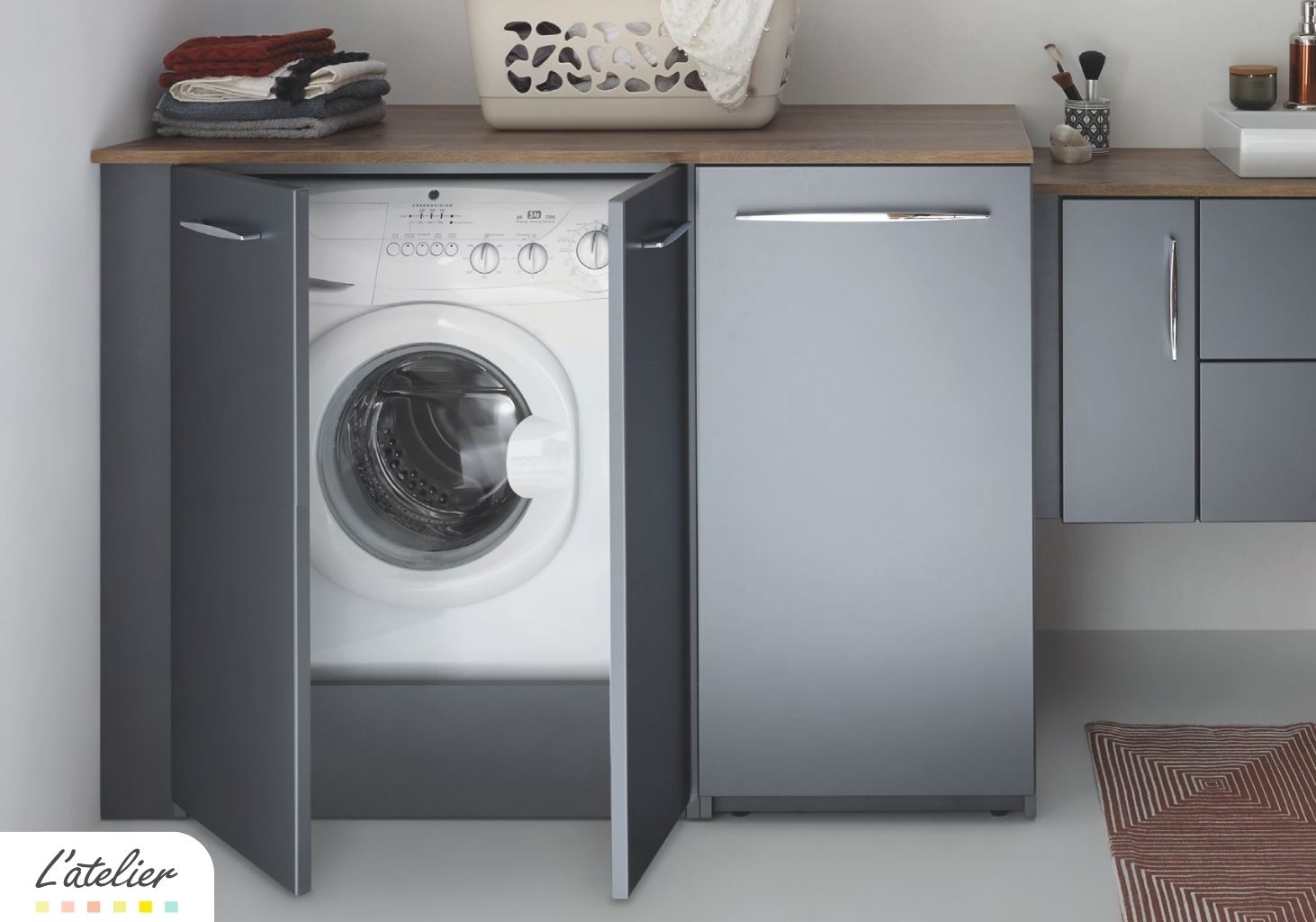 Gagnez de la place et rangez tant que vous pouvez! Richesse et profusion que l’ingénieuse liste des meubles complémentaires L’Atelier Bain Carrelage. Un très large choix de solutions de rangements et d’astuces vous permettant d’ordonner avec efficacité votre salle de bain. Jolie ergonomie et design pratique sont au rendez-vous!