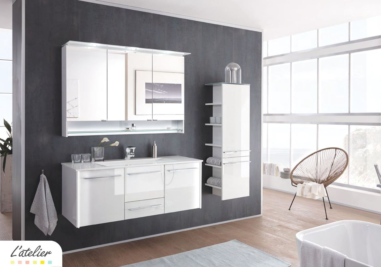 Exercice de style et dernier né de la grande lignée LEONARDO, Vincente, est l’aboutissement d’une salle de bain sophistiquée et épurée où tout est juste de voix. Sens de la proportion, équilibre des volumes, recherche d’efficacité et rangements à profusion. Effets miroirants, tout en grandeur, avec les façades en verre de plus bel effet, Vincente prend de la hauteur et atteint des sommets!